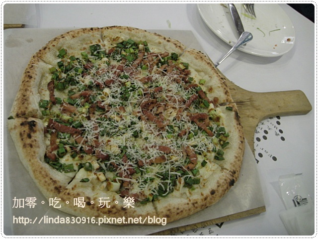 我們點的是三星香蔥培根披薩,看起來很豐盛!