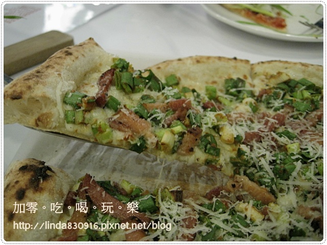 滿滿的三星蔥和培根,搭配上Q軟的拿坡里餅皮,襯上一絲絲的白起司