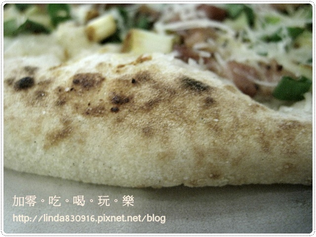 餅皮邊有拿坡里披薩特有的豹紋斑~淡淡的焦香味,不是烤焦喔 !