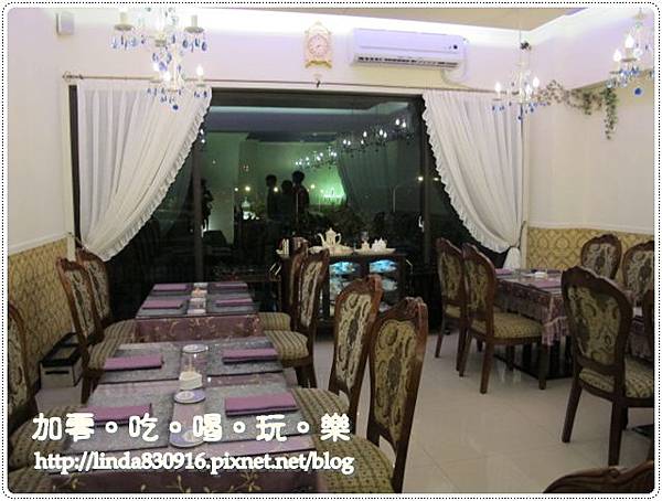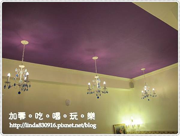 整個桌巾、餐巾、吊燈都是紫色基調,強調紫色夢幻
