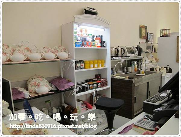 一樓櫃台,裡面現場沖泡午茶以及盛裝甜點麵包