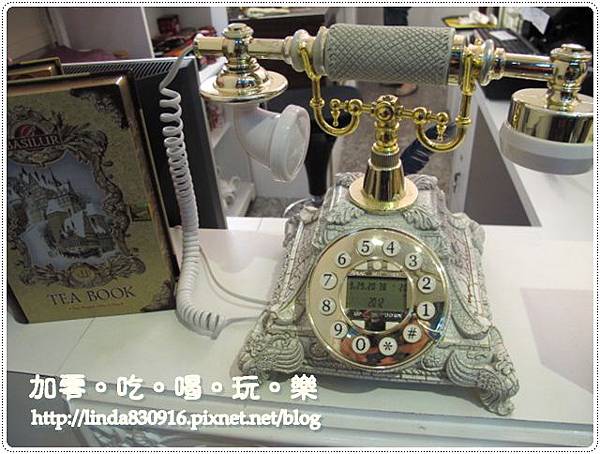 櫃檯另一端發現了一指英國復古電話,看起來是撥號盤,實際看清楚是按鍵式